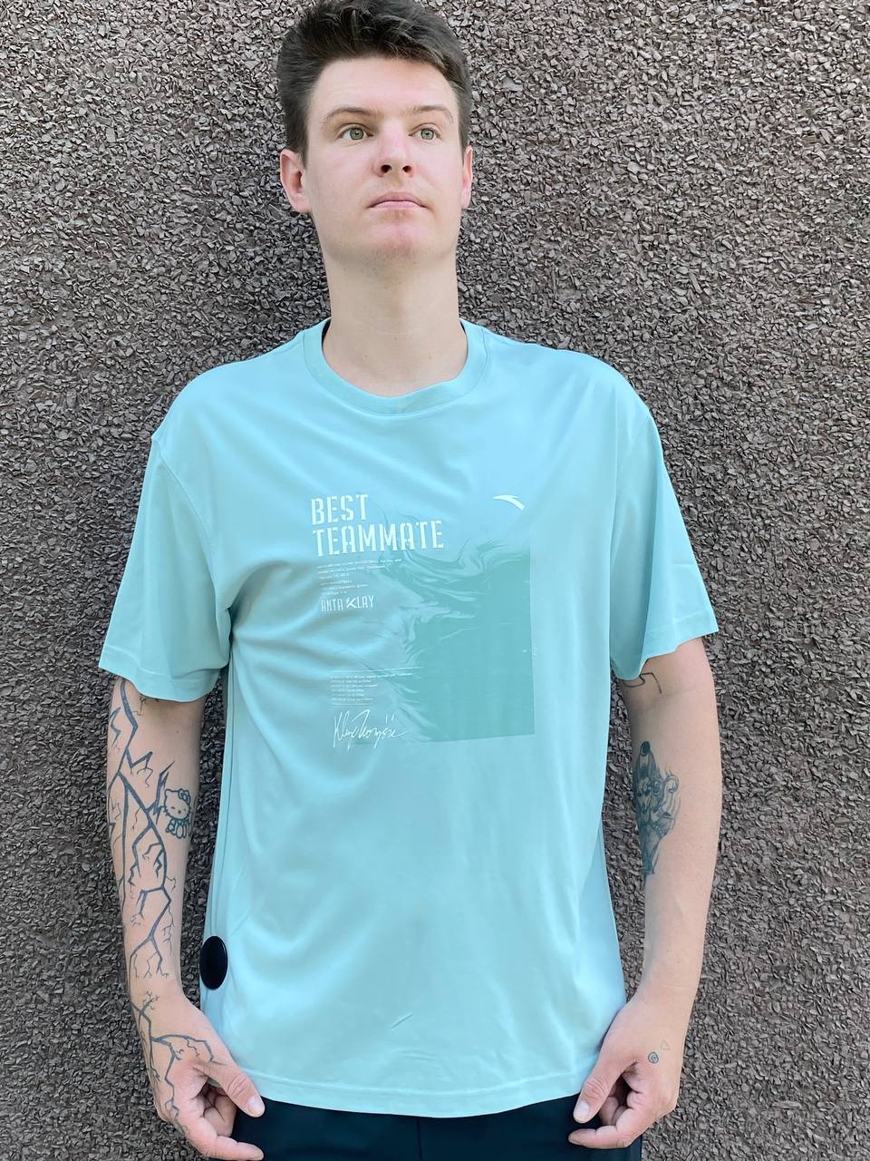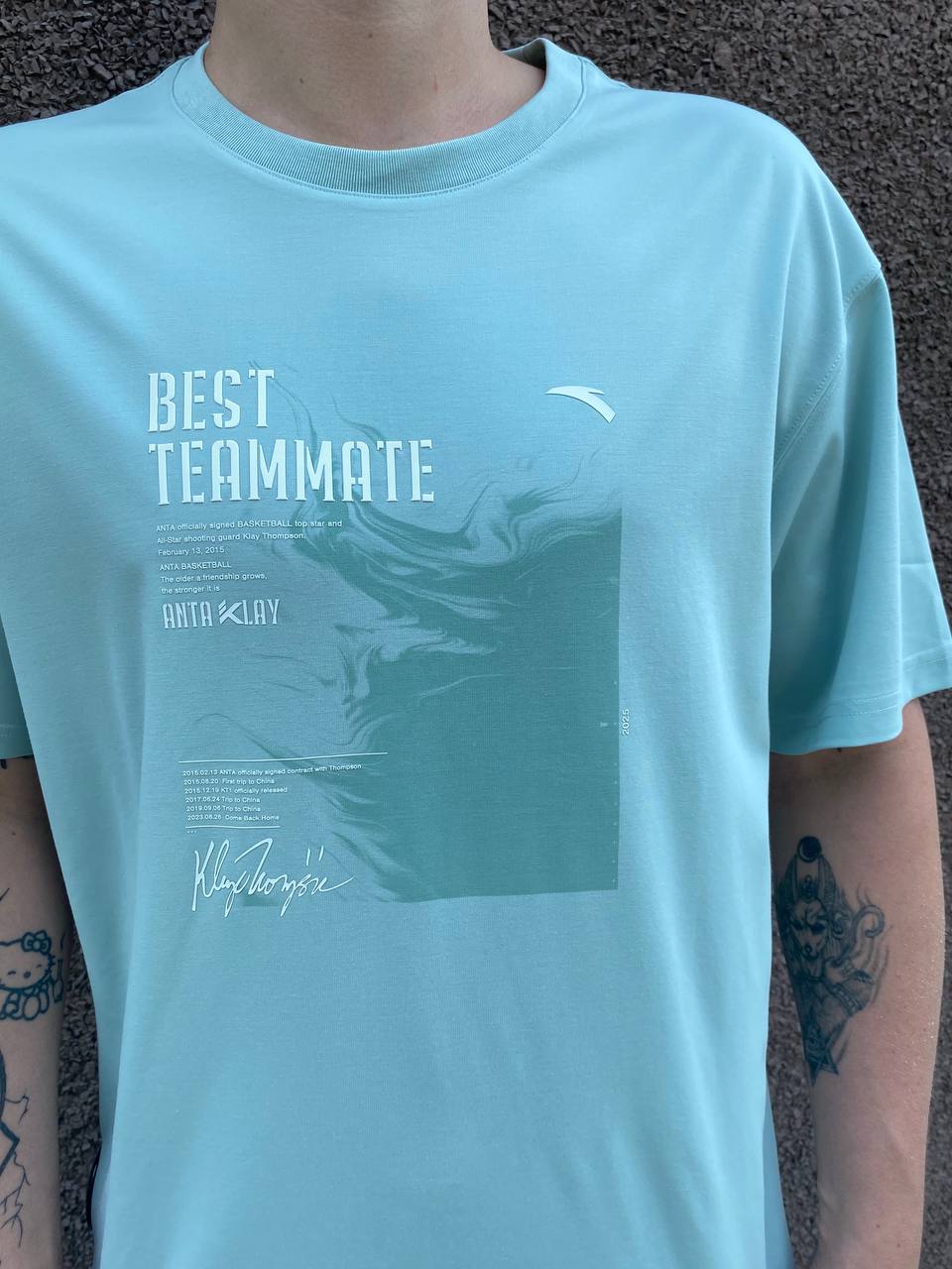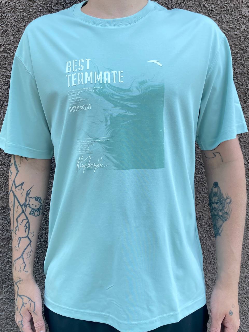 Мужская футболка свободного кроя BEST TEAMMATE из баскетбольной коллекции KT – стильный выбор для поклонников баскетбола и Клэя Томпсона. Коллекция KT вдохновлена одним из известнейших современных игроков в баскетбол – Клэем Томпсоном, который уже более 10 лет является амбассадором ANTA. В этом сезоне девиз коллекции BEST TEAMMATE напоминает нам о том, с каким вниманием Клэй относится к своим товарищам по команде, как поддерживает их (особенно менее опытных игроков), и о том, что за годы сотрудничества Клэй и ANTA тоже стали единой командой. Эта футболка выполнена из легкого трикотажного полотна (165 гр/м2), сочетающего в себе вискозу (46%) для мягкости и отличной воздухопроницаемости, полиэстер (43%) для прочности и быстрого высыхания, а также модал (11%) для дополнительной гладкости и приятных тактильных ощущений. Технология A-CHILL TOUCH дарит ощущение прохлады в течение всего дня. Свободный крой создает непринужденную посадку и полную свободу движений, при этом подчеркивает атлетизм владельца. Круглый вырез горловины обеспечивает дополнительное удобство. Переднюю часть футболки украшает крупный принт, включающий девиз коллекции BEST TEAMMATE, изображение личной подписи Клэя Томпсона и памятные даты, касающиеся сотрудничества между Клэем и ANTA. Коллекция KT вдохновлена одним из известнейших современных игроков в баскетбол – Клэем Томпсоном, который уже более 10 лет является амбассадором ANTA. В этом сезоне девиз коллекции BEST TEAMMATE напоминает нам о том, с каким вниманием Клэй относится к своим товарищам по команде, как поддерживает их (особенно менее опытных игроков), и о том, что за годы сотрудничества Клэй и ANTA тоже стали единой командой. Небесно-голубой цвет делает эту футболку ярким элементом вашего спортивного гардероба, который непринужденно сочетается с темными шортами и брюками. Выбирая футболку BEST TEAMMATE из коллекции KT, вы получаете стильную и комфортную вещь, вдохновленную командным духом и партнерством Клэя Томпсона и ANTA. Выразите свою любовь к великой игре и вашу поддержку легендарному игроку!Характеристики